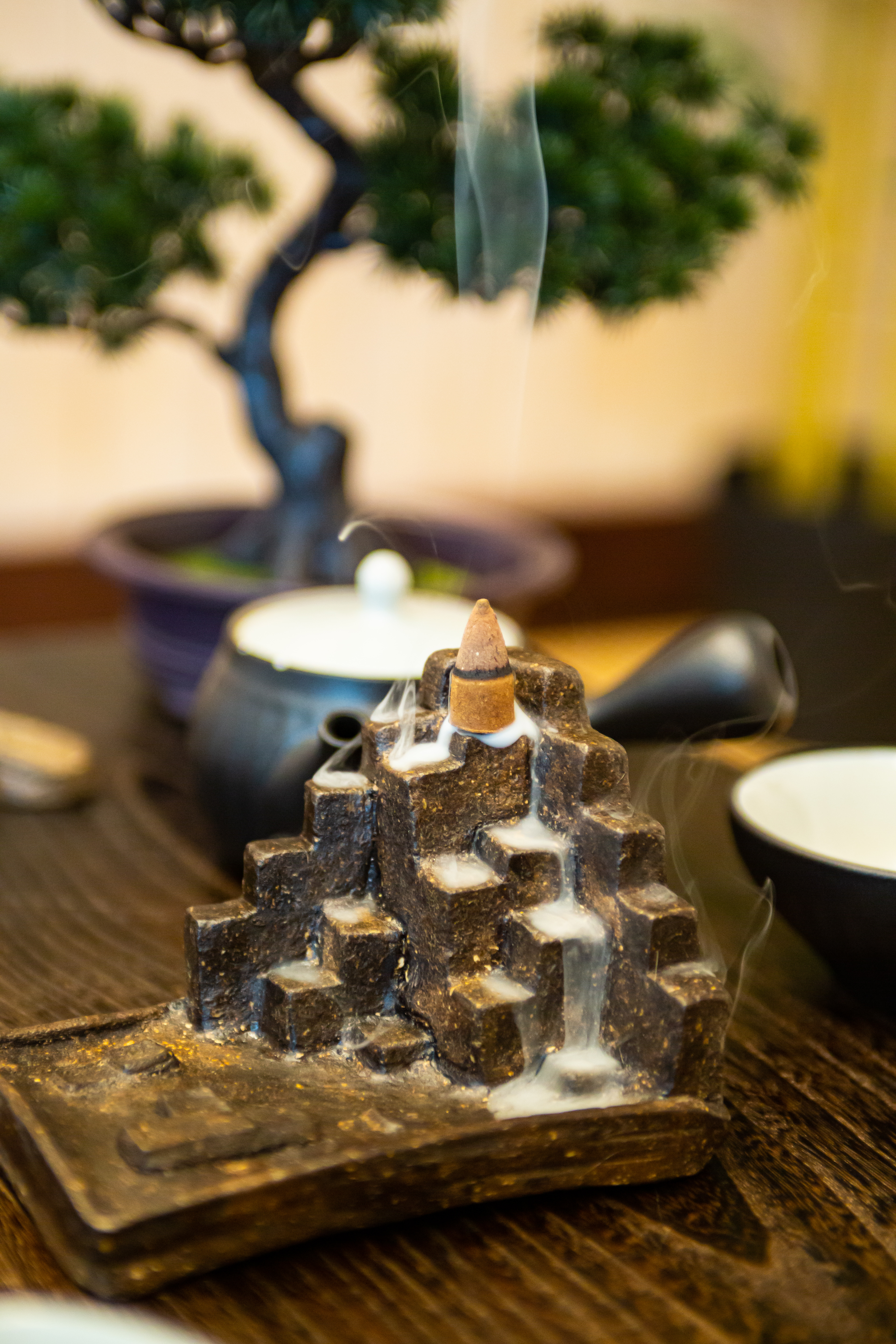 It is designed with a castle-shaped insense holder, and along with a chess set, Insense is a prop that combines oriental sensibility with Western sensibility, a combination of chess and sex. It is an insense holder using Backflow Con Insense, and Backflow is a prop that can be produced in various ways due to the image effect of smoke sinking to the floor when lit.